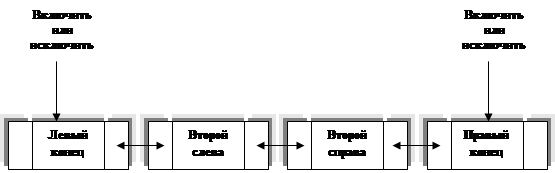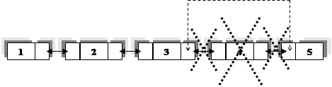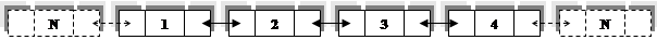 На рисунке видно как добавляется и удаляется элемент из двунаправленного списка. При добавлении нового элемента (обозначен N) между элементами 2 и 3. Связь от 3 идет к N, а от N к 4, а связь между 3 и 4 удаляется.
