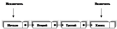 В однонаправленном списке структура добавления и удаления такая же только связь между элементами односторонняя. Очередь (queue) — линейный список, в котором все включения производятся на одном конце списка, а все исключения (и обычно всякий доступ) делаются на другом его конце. Очередь — тип данных, при котором новые данные располагаются следом за существующими в порядке поступления; поступившие первыми данные при этом обрабатываются первыми.