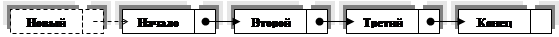 Процедура new(i) выполняет две функции: 1) резервирует место в памяти для размещения динамического объекта соответствующего типа с именем i; 2) указателю i присваивает адрес динамического объекта i. Однако, узнать адрес динамической переменной с помощью процедуры writeln (i) нельзя. Динамические объекты размещаются по типу стека в специальной области памяти — так называемой «куче» свободной от программ и статических переменных. Символ ^ после имени указателя означает, что речь идет не о значении ссылочной переменной, а о значении того динамического объекта, на который указывает эта ссылочная переменная. Имя ссылочной переменной с последующим символом ^ называют «переменной с указателем». Именно она синтаксически выполняет роль динамической переменной и может быть использована в любых конструкциях языка, где допустимо использование переменных того типа, что и тип динамической переменной. Если в процессе выполнения программы некоторый динамический объект р^, созданный в результате выполнения оператора new(p), становится ненужным, то его можно уничтожить (очистить выделенное ему место в памяти) с помощью стандартной процедуры dispose(p). В результате выполнения оператора вида dispose(p) динамический объект, на который указывает ссылочная переменная р, прекращает свое существование, занимаемое им место в памяти становится свободным, а значение указателя р становится неопределенным (но не равным nil). Если до вызова процедуры dispose(p) имел пустое значение nil, то это приведет к «зависанию» программы. Если же до вызова этой процедуры указатель р не был определен, то это может привести к выходу из строя операционной системы. Значение одного указателя можно присвоить другому указателю того же типа. Можно также указатели одинакового типа сравнивать друг с другом, используя отношения «=» или «о». Стандартные процедуры new и dispose позволяют динамически порождать программные объекты и уничтожать их, что дает возможность использовать память машины более эффективно. Связанные списки данных. Несмотря на богатый набор типов данных в Паскале, он не исчерпывает всего практически необходимого для разработки многих классов программ. В частности, из разнообразных связанных структур данных в языке стандартизированы массивы и файлы, а кроме них могут потребоваться и схожие с ними, но иные структуры. Для них характерны, в частности, следующие признаки: а) неопределенное заранее число элементов; б) необходимость хранения в оперативной памяти. Средство для реализации таких структур дает аппарат динамических переменных. Простейшей из обсуждаемых структур является однонаправленный список. Он строится подобно очереди на прием к врачу: пациенты сидят на любых свободных местах, но каждый из них знает, за кем он в очереди (т.е. данные размещаются на свободных местах в памяти, но каждый элемент содержит ссылку на предыдущий или следующий элемент). Поскольку количество пациентов заранее не очевидно, структура является динамической. Другая подобная структура - стек. Его моделью может служить трубка с запаянным концом, в которую вкатывают шарики. При этом реализуется принцип «последним вошел - первым вышел». Возможное количество элементов в стеке не фиксировано. Остановимся на примере стека и покажем его программную реализацию. Технически при этом следует решить ряд зад
