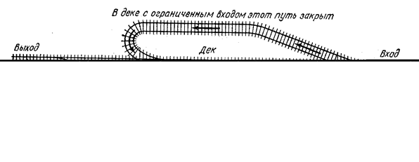 Дек (deck) (стек с двумя концами) — линейный список, в котором все включения и исключения (и обычно всякий доступ) делаются на обоих концах списка. Иногда аналогия с переключением железнодорожных путей, предложенная Э. Дейкстрой, помогает понять механизм стека. На рис. 2. Изображен дек в виде железнодорожного разъезда.