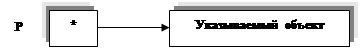 На этой схеме р. - имя указателя; звездочкой изображено значение указателя, а стрелка отражает тот факт, что значением указателя является адрес объекта (ссылка на объект), посредством которого объект и доступен в программе.
