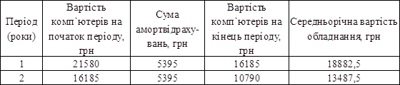 Розрахунок суми лізингових платежів по роках: 1-й рік: Сума амортвідрахувань А(1)= 21580 х 10 / 100 = 5395 грн. Розмір комісійних виплат банкові П(ком1)=18882,5 х 58 /100=10951,85грн. Виручка В=10951,85грн.; ПДВ= 10951,85 х 0,2=2190,37грн. Загальна сума лізингового платежу:Л(п1)= 5395 + 10951,85 + 2190,37=18537,22грн.2-й рік: Сума амортвідрахувань А(2)= 21580 х 10 / 100 = 5395 грн. Розмір комісійних виплат банкові П(ком2)=13487,5 х 55 /100=7418,12грн. Виручка В=7418,12грн.; ПДВ= 7418,12 х 0,2=1483,62грн. Загальна сума лізингового платежу:Л(п2)= 5395 + 7418,12 + 1483,62=14296,74грн.Загальна сума лізингових платежів за час дії лізингової угоди складе: Л(п)= 18537,22 + 14296,74= 32833,96 грн. Графік виплати лізингових внесків виглядатиме наступним чином: