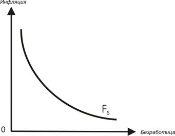 Естественная норма безработицы подсчитывается, как усредненная величина фактического уровня безработицы за предыдущие десять лет и последующие десять лет. Надо сказать, что естественный уровень безработицы является стабильной, но не постоянной величиной. Например, в то время как в 60-х годах естественная норма безработицы равнялась 4%, то в настоящее время она равна 5-6%. Причин тому несколько. Во-первых, в изменилась структура рабочей силы: в ней увеличилась доля женщин и молодежи, у которых традиционно высокая норма безработицы. Во-вторых, увеличились социальные пособия по безработице, которые способствовали тому, что безработные стали более спокойно искать работу, кроме того они стали привередливее в отношении заработной платы – ведь высокое пособие по безработице им гарантировано. Относительно эффективности этих самых пособий спорят многие экономисты, мы же вернемся к этой проблеме в последующих главах. Естественный уровень безработицы современные экономисты все чаще называют NAIRU (Non- Accelerating- Inflation Rate of Unemployment), т. е. уровень безработицы, не повышающий инфлящию. При естественном уровне безработицы экономика работает на полную мощность, при уровне потенциального ВВП, и если попытаться снизить безработицу, то неизбежно возникнет инфляция. Эту связь безработицы и инфляции исследовал английский экономист А. Филлипс в 50-е годы. Он построил график обратной зависимости инфляции и безработицы, названный в его честь кривой Филлипса (рис. 2.10). Рис. 2.10 Кривая Филлипса в краткосрочном периоде