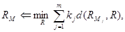 Средняя ранжировка есть такая точка, сумма квадратов расстояний от которой до всех точек – ранжировок экспертов является минимальной. Средняя ранжировка определяется из условия