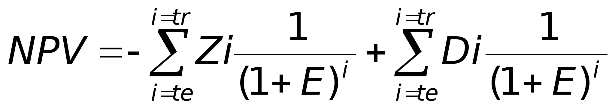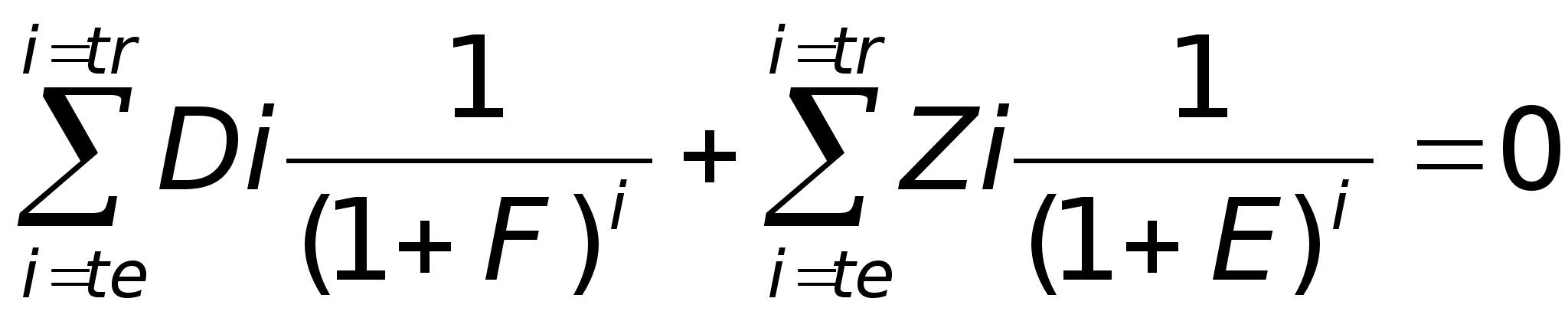 Исходя из этих определений в общем виде можно записан) соотношение для расчета критерия — «Внутренняя норма доходности» в следующем виде: