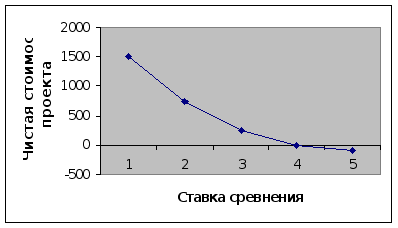 Зависимость чистой текущей стоимости от выбора ставки сравнения Рис. 2