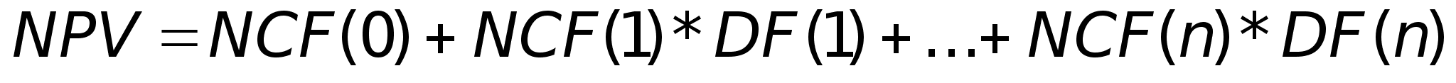где t - порядковый номер интервала планирования (при условии, что за нулевой принят интервал начала осуществления проекта, т.е. DF(0)=1. После того, как все значения чистых потоков денежных средств проекта будут умножены на соответствующий коэффициент DF. подсчитывается их сумма. Полученная величина представляет собой показатель чистой текущей (приведенной) стоимости NPV -чистая настоящая ценность проекта: