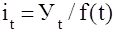 Отрицательной стороной использования метода скользящей средней является образование сдвигов в колебаниях уровней ряда, обусловленных «скольжением» интервалов укрупнения. Сглаживание с помощью скользящей средней может привести к появлению «обратных» колебаний, когда выпуклая «волна» заменяется на вогнутую. В последнее время стала рассчитываться адаптивная скользящая средняя. Ее отличие состоит в том, что среднее значение признака, рассчитываемое также как описано выше, относится не к середине ряда, а к последнему промежутку времени в интервале укрупнения. Причем предполагается, что адаптивная средняя зависит от предыдущего уровня в меньшей степени, чем от текущего. То есть., чем больше промежутков времени между уровнем ряда и средним значением, тем меньшее влияние оказывает значение этого уровня ряда на величину средней. г. Метод экспоненциальной средней. Экспоненциальная средняя – это адаптивная скользящая средняя, рассчитанная с применением весов, зависящих от степени «удаленности» отдельных уровней ряда от среднего значения. Величина веса убывает по мере удаления уровня по хронологической прямой от среднего значения в соответствии с экспоненциальной функцией, поэтому такая средняя называется экспоненциальной. На практике применяется многократное экспоненциальное сглаживания ряда динамики, которое используется для прогнозирования развития явления. Вывод: способы, включенные в первую группу, ввиду применяемых методик расчета предоставляют исследователю очень упрощенное, неточное, представление о тенденции в ряду динамики. Однако корректное применение этих способов требует от исследователя глубины знаний о динамике различных социально - экономических явлений. 1.2.2 Методы «аналитического» выравнивания Более точным способом отображения тенденции динамического ряда является аналитическое выравнивание, т. е. выравнивание с помощью аналитических формул. В этом случае динамический ряд выражается в виде функции у (t), в которой в качестве основного фактора принимается время t, и изменения аргумента функции определяют расчетные значения уt. Фактическими (или эмпирическими) уровнями ряда динамики называют исходные данные об изменении явления, т. е. данные, полученные опытным путем, посредством наблюдения. Они обозначаются уi. Расчетными (или теоретическими) уровнями ряда называют значения, полученные в результате подстановки в уравнение тренда значений t, и обозначают их. Целью аналитического выравнивания динамического ряда является определение аналитической или графической зависимости f(t) . На практике по имеющемуся временному ряду задают вид и находят параметры функции f(t) , а затем анализируют поведение отклонений от тенденции. Функцию f(t) выбирают таким образом , чтобы она давала содержательное объяснение изучаемого процесса . Чаще всего при выравнивании используются следующий зависимости : линейная параболическая экспоненциальная или 1)Линейная зависимость выбирается в тех случаях , когда в исходном временном ряду наблюдаются более или менее постоянные абсолютные и цепные приросты , не проявляющие тенденции ни к увеличению , ни к снижению. 2)Параболическая зависимость используется , если абсолютные цепные приросты сами по себе обнаруживают некоторую тенденцию развития , но абсолютные цепные пр