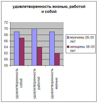 6. Удовлетворенность собой у женщин и мужчин 28-35 лет. Результаты вычислений.