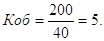 где Р - стоимость реализованной продукции (выручка от реализации) за определенный период; О - средний остаток оборотных средств за тот же период. Если выручка от реализации, например, берется за год, то и средний остаток оборотных средств также берется за год. При этом среднегодовой остаток оборотных средств за год рассчитывается как средняя хронологическая величина из остатков по месяцам. Так, если выручка от реализации составила за год 200 млн. руб., а среднегодовой остаток оборотных средств - 40 млн. руб., то коэффициент оборачиваемости оборотных средств составит: