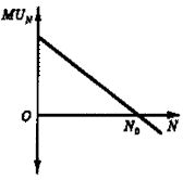 Рис. 3. Убывание предельной полезности труда. Труд Госсен рассматривает в качестве особого блага, полезность которого изменяется в полном соответствии с первым законом. Но в отличие от обычных благ предельная полезность труда может достигать отрицательных значений. "Всякое движение, - пишет Госсен, - после того как мы в течение долгого времени отдыхали, доставляет нам вначале наслаждение. При продолжении своем наслаждение это подчиняется вышеизложенному закону падения. Если же, продолжаясь, оно упало до нуля, то при этом не только прекращается наслаждение, но необходимость продолжения затраты собственной силы доставляет ощущение, обратное наслаждению"*. На рис. 3 N0 часов работы - "в радость", дальнейшее же продолжение труда - "в тягость". При определении оптимального соотношения между свободным и рабочим временем Госсен рекомендует придерживаться следующего правила: "Для того чтобы достигнуть в жизни наибольшего наслаждения, человек должен распределить свое время и силы при достижении различного рода наслаждения таким образом, чтобы ценность предельного атома каждого получаемого наслаждения равнялась бы усталости, которую он претерпел, если бы он достиг этого атома в последний момент затраты своей энергии".