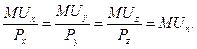 Введем обозначения: цены товаров – Рx, Рy, Pz; предельные полезности товаров – MUx, МUy, МUz. Тогда правило максимизации примет вид: