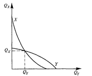 Изменение цены и объема выпуска продукции фирмой X при расширении производства фирмой Y: D — спрос; MR — предельный доход; МС — предельные издержки. Если рассматривать ситуацию с позиции фирмы Y, то можно начертить подобный график, отражающий изменение цены и количества выпускаемой продукции в зависимости от действий, предпринятых фирмой X. Объединив оба графика, получим кривые реакции обеих фирм на поведение друг друга. На рис. 5 кривая X отражает реакцию фирмы X на изменения в производстве фирмы Y, а кривая Y— соответственно наоборот. Равновесие наступает в точке пересечения кривых реакций обеих фирм. В этой точке предположения фирм совпадают с их реальными действиями. Рисунок 5. Кривые реакции фирм X и Y на поведение друг друга