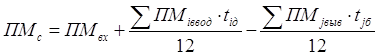 где ПМвых — выходная производственная мощность; ПМвх — входная производственная мощность; ПМт — прирост производственной мощности за счет технического перевооружения производства; ПМр — прирост производственной мощности за счет реконструкции предприятия: ПМнс — прирост производственной мощности за счет расширения (нового строительства) предприятия; ПМвыб — выбывающая производственная мощность. Поскольку ввод и выбытие мощностей производится не одномоментно, а происходит на протяжении всего планируемого периода, то возникает необходимость расчета среднегодовой производственной мощности. Она определяется по формуле: