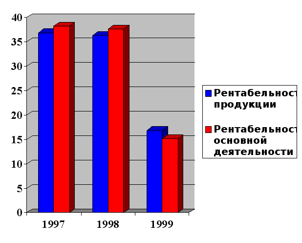 Из таблицы 6 видно, что структура производства меняется. К 1999 году объём выпускаемой продукции увеличивается. За период с 1997 года по 1999 год объём производства увеличился в 1,29 раза. Объёмы производства соответствуют объёмам реализации продукции. Так объём реализации продукции за период с 1997 года по 1999 год увеличился в 1,18 раза. Это обусловлено успехом маркетинговых усилий, приведение объёма производства к объёму портфеля предварительных заказов, работа под конкретные договора. Оценка рентабельности предприятия производится на основе показателей представленных в таблице 7. Показатели рентабельности говорят об эффективности (прибыльности) работы предприятия. Отрицательные показатели рентабельности говорят об убыточности предприятия. Таблица 7 Показатели рентабельности