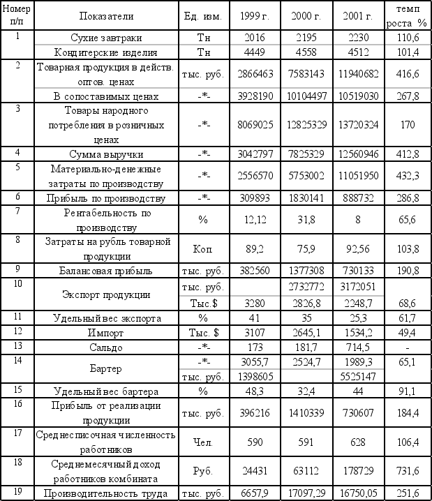 | № | Показатели | 1999 г. | 2000 г. | 2001 г. |