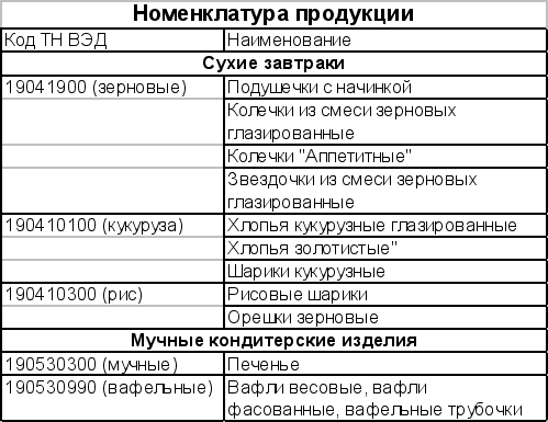 22 4.3. Экономическая эффективность внешнеэкономической деятельности УПП ВКК «Витьба» Значительную часть своей продукции кондитерский комбинат поставляет за рубеж. Основными странами-импортерами являются Россия и другие страны СНГ, а также Литва. Динамика экспорта продукции в денежном выражении и удельные вес экспорта представлены в таблице 4.2.3. В таблице 4.3.1. представлена номенклатура экспортируемой продукции по кодам ТН ВЭД. Таблица 4.3.1.