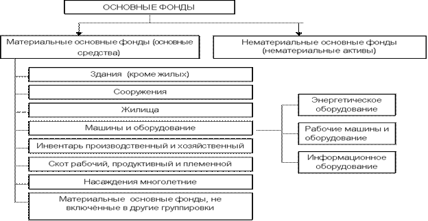 Реферат: Ответы на экзаменационные вопросы по экономике предприятияРеферат: Ответы на экзаменационные вопросы по экономике предприятия1.ОСНОВНЫЕ СРЕДСТВА ПРЕДПРИЯТИЯНаиболее высокую долю в структуре имущественного комплекса предприятия занимают основные фонды. Основными фондами являются произведенные активы, используемые неоднократно или постоянно в течение длительного периода, но не менее одного года, для производства товаров, оказания рыночных и нерыночных услуг. Основные фонды делятся на материальные и нематериальные (рис.). К материальным основным фондам (основным средствам) относятся здания, сооружения, машины и оборудование, измерительные и регулирующие приборы и устройства, жилища, вычислительная техника и оргтехника, транспортные средства, инструмент, производственный и хозяйственный инвентарь, рабочий, продуктивный и племенной скот, многолетние насаждения и прочие виды материальных основных фондов.