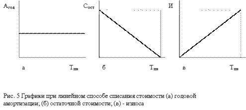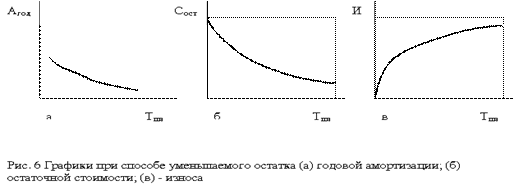 Линейный способ целесообразно применять для тех видов основных средств, где время, а не устаревание (моральный износ) является основным фактором, ограничивающим срок службы. При способе уменьшаемого остатка годовая сумма амортизационных отчислений определяется исходя из остаточной стоимости объекта основных средств на начало отчетного года и нормы амортизации, исчисленной на основании срока полезного использования этого объекта: