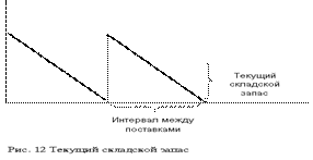 Текущим складским запасом материальных ценностей называют запас, обеспечивающий потребности производства на период между двумя очередными поступлениями их поставщиков (рис. 12). В