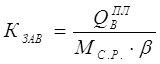 Для галузей з безперервним процесом виробництва коефіцієнт завантаженості машин, обладнання визначається як відношення річного обсягу випуску продукції до суми добутків добової продуктивності роботи одиниці обладнання на річний фонд часу роботи одиниці обладнання: