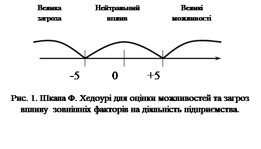 Вплив зовнішніх факторів на діяльність підприємства визначається по шкалі Ф. Хедоурі (рис 1.).