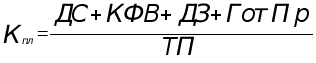 где Кол — коэффициент общей ликвидности; ТА — текущие активы; ТП — текущие пассивы; Предприятие считается ликвидным, если Кол > 1. Коэффициент промежуточной ликвидности — это способность предприятия выполнять краткосрочные обязательства за счет денежных средств, краткосрочных финансовых вложений, дебиторской задолженности (счета к получению) (ДЗ) и готовой продукции на складе (ГотПр) [2,18]