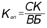 где Коп — коэффициент общей платежеспособности; СК — собственный капитал; ВБ — валюта баланса. Предприятие считается финансово-устойчивым, если Коп> 0.5. Коэффициент автономии, соизмеряющий собственный и заемный капитал [2,18]