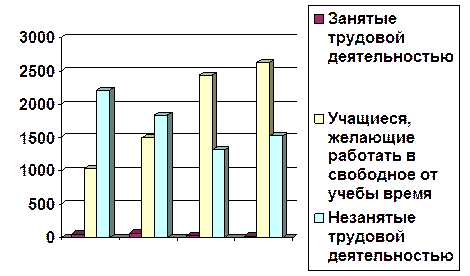 Вывод: с1999 по 2002 год прослеживается увеличение числа подростков в возрасте 14-17 лет. Число пенсионеров, как и высвобожденных работников нестабильно. Число молодежи в возрасте 16-29 лет медленно возрастало с 1999 по 2001 год, но в 2002 году произошло резкое уменьшение их числа. Число беженцев и вынужденных переселенцев медленно растет.