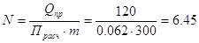 транспортируемой смеси Общее время одного цикла принимаем равным 6 ч 24 мин За это время в питателе машины накопится 126,6 кг/ч * 6,40 ч = 810 кг смеси Количество машин УСВМ 1 N=810/1680=0,48 (берем одну машину) Техническая характеристика в приложении 7 Расчет количества расходных механизированных лабазов типа ЛРМ-25Ш ведется исходя из ассортимента вырабатываемой пряжи и необходимости вылеживания смесей в течении 16-24 часов и рассчитывается по формуле где Qcм – масса смеси расходуемой в час, кг/час. Qсм = Qчо + Qчу =130,2 (см. табл. 5.1); t – длительность вылеживания, ч; Wл – объем лабаза, м3; g - плотность смеси в лабазе, кг/м3; hл – коэффициент использования объема лабаза (0,85¸0,9). Для получения удвоенного числа лабазов (исходя из необходимости вылеживания смеси и непрерывности питания кардочесального аппарата) в числитель вводится цифра - 2. При трехсменной работе t = 24 ч, при двухсменной t = 16,4 ч. 6.5 Оборудование для производства аппаратной пряжи и ровницыПодробный расчет и выбор технологических параметров прядильной машины ПБ-114-Ш1 в разделе 4 (табл. 4.3.) Число прядильных машин (N)необходимых для часовой выработки однониточной пряжи (Qпр) каждого вида будет определяться по следующему выражению.