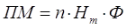 где ПМ — производственная мощность подразделения (цеха, участка); n — количество единиц одноименного ведущего оборудования, ед.; Нт — часовая техническая (паспортная) мощность единицы оборудования, ед.; Ф — фонд времени работы оборудования, часов. При этом необходимо учесть все оборудование, закрепленное за цехом, включая бездействующее вследствие неисправности, находящееся в ремонте и подлежащее установке в плановом периоде. Не учитывается только оборудование, находящееся в резерве, а также на опытно-экспериментальных и специальных участках для профессионально-технического обучения. При расчете производственной мощности предприятий машиностроения, заводов по производству строительных материалов, текстильных, швейных и обувных фабрик, предприятий пищевой промышленности и некоторых других также необходимо учитывать производственные площади. Так на швейных фабриках в основу расчета производственной мощности пошивочных цехов положено количество рабочих мест (без учета резервных), которое может быть размещено на производственной площади, выделяемой для размещения производственных потоков. Расчет выполняется по формуле: