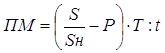 где S — производственная площадь цеха, выделяемая для организации производственных потоков, кв. м; Sн — производственная нормативная площадь (с учетом проходов) на одно рабочее место, кв. м; Т — режимное время работы, час.; t — затраты времени на изготовление одного изделия, час. В краткосрочном периоде производственная мощность является постоянной величиной. В долгосрочном периоде она может быть уменьшена за счет вывода из производства физически и морально устаревших, излишних машин, оборудования и площадей, или увеличена путем технического перевооружения производства, реконструкции и расширения предприятия. В связи с этим при обосновании производственной программы производственными мощностями рассчитываются входная, выходная и среднегодовая производственная мощность. Входная производственная мощность — это мощность на начало отчетного или планируемого периода. Выходная производственная мощность — это мощность предприятия на конец отчетного или планируемого периода. При этом выходная мощность предыдущего периода является входной мощностью последующего периода. Выходная мощность рассчитывается по формуле: ПМвых = ПМвх + ПМт + ПМр + ПМнс – ПМвыб (2.3) где ПМвых — выходная производственная мощность; ПМвх — входная производственная мощность; ПМт — прирост производственной мощности за счет технического перевооружения производства; ПМр — прирост производственной мощности за счет реконструкции предприятия: ПМнс — прирост производственной мощности за счет расширения (нового строительства) предприятия; ПМвыб — выбывающая производственная мощность. Поскольку ввод и выбытие мощностей производится не одномоментно, а происходит на протяжении всего планируемого периода, то возникает необходимость расчета среднегодовой производственной мощности. Она определяется по формуле: