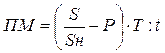 где S — производственная площадь цеха, выделяемая для организации производственных потоков, кв. м; Sн — производственная нормативная площадь (с учетом проходов) на одно рабочее место, кв. м; Т — режимное время работы, час.; t — затраты времени на изготовление одного изделия, час. В краткосрочном периоде производственная мощность является постоянной величиной. В долгосрочном периоде она может быть уменьшена за счет вывода из производства физически и морально устаревших, излишних машин, оборудования и площадей, или увеличена путем технического перевооружения производства, реконструкции и расширения предприятия. В связи с этим при обосновании производственной программы производственными мощностями рассчитываются входная, выходная и среднегодовая производственная мощность. Входная производственная мощность — это мощность на начало отчетного или планируемого периода. Выходная производственная мощность — это мощность предприятия на конец отчетного или планируемого периода. При этом выходная мощность предыдущего периода является входной мощностью последующего периода. Выходная мощность рассчитывается по формуле: ПМвых = ПМвх + ПМт + ПМр + ПМнс – ПМвыб (2.3) где ПМвых — выходная производственная мощность; ПМвх — входная производственная мощность; ПМт — прирост производственной мощности за счет технического перевооружения производства; ПМр — прирост производственной мощности за счет реконструкции предприятия: ПМнс — прирост производственной мощности за счет расширения (нового строительства) предприятия; ПМвыб — выбывающая производственная мощность. Поскольку ввод и выбытие мощностей производится не одномоментно, а происходит на протяжении всего планируемого периода, то возникает необходимость расчета среднегодовой производственной мощности. Она определяется по формуле: