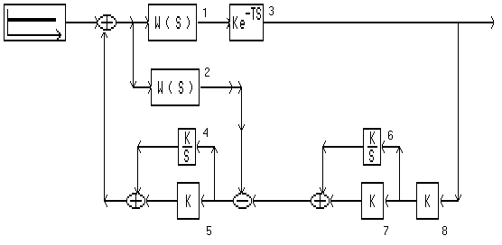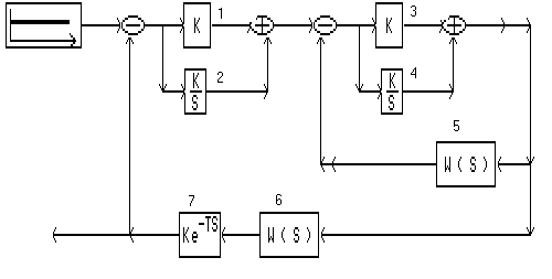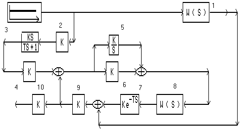 Структурная схема комбинированной системы без компенсатора 1.W(s)=0.599*s/(11.655*s2+6.467*s+1) 2.K=Kп=0.51007 3.K/S=Kп/Tи=0.0958 4.W(s)=1/(14.583*s2+6.663*s+1) 5.K=1,T=6 6.K=-1 7.K=-1