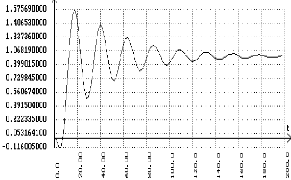 Переходной процесс Перерегулирование – 57% Время затухания – 150с Степень затухания – 0.91