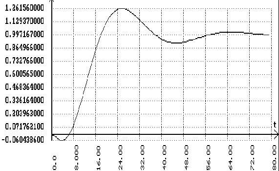 воздействию W(s)=1/(23.04*s2+9.6*s+1) K=Kп=4.396 K/S=Kп/Tи=0.5582