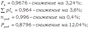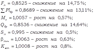 Выводим: Принимаем, что на уровне отчётного месяца остаются величины пробега брутто грузового поезда (Q1бр) и среднесуточного пробега поездного грузового локомотива (S1л), а коэффициент вспомогательного линейного пробега локомотивов к пробегу во главе поездов изменится в отчётном периоде (b1лин)по отношению к базисному (b0лин). Тогда влияние изменения этого коэффициента на среднесуточную производительность поездного грузового рабочего локомотива находится: ±Fл = (Q1бр*S1л)/(1+b1лин) - (Q1бр*S1л)/(1+b0лин) Если b1лин > b0лин, то Fл может быть со знаком минус, что означает снижение среднесуточной производительности грузового поезда, а также со знаком плюс, т.е. рост производительности. ±Fл = (2746*581,9813)/1,1447 - (2746*581,9813)/1,1438 = 1098,5359 (т-км брутто) Увеличение коэффициента на 0,0009 доли привело к уменьшению среднесуточной производительности грузового поезда на 1098,5359 тонно-километров. Данное увеличение коэффициента, а также снижение производительности, отрицательно сказывается на работе дороги. 10 Разработка предложений по улучшению качества использования подвижного состава По имеющимся данным о качестве использования подвижного состава, можно сказать, что есть такие показатели, значения которых следовало бы увеличить, т.е. необходимо улучшить качество использования подвижного состава. Для улучшения качества использования подвижного состава необходимо применение комплекса мер. Снижение среднесуточной производительности рабочего грузового вагона отрицательно повлияло на работу дороги. Для увеличения производительности вагонов необходимо, с одной стороны, сокращать простои, увеличивать скорость передвижения вагонов и, с другой стороны, улучшать использование его грузоподъёмности. Причём меры увеличения производительности вагонов должны соответствовать экономической эффективности работы коллективов транспорта. Для сокращения коэффициента порожнего пробега необходимо в максимально возможной степени использовать загрузку порожних вагонов в попутном для следования порожних вагонов направлении. Снижение средней динамической нагрузки отрицательно повлияло на работу дороги. Это привело к тому, что стало использоваться большее количество вагонов рабочего парка, отсюда больше затрат на ремонт, техническое обслуживание. Для увеличения средней динамической нагрузки и как следствие снижения затрат следует использовать вагоны с максимально допустимой нагрузкой, что позволяет выполнить перевозки с минимальным рабочим парком вагонов. Среди показателей качества использования грузовых поездов и поездных локомотивов резкое снижение среднего веса поезда тары и снижение веса поезда нетто. В результате снизился вес поезда брутто, что отрицательно сказалось на результатах работы дороги. Необходимо дальнейшее повышение среднего веса поезда, т.к. оно является одним из основных и эффективных направлений освоения нарастающих объёмов перевозок. Рост веса поезда позволит один и тот же объём перевозок выполнить с меньшими затратами поездо- и локомотиво-километров, а, следовательно, уменьшается потребность в локомотивах и локомотивных бригадах, уменьшаются затраты на их содержание. В результате проделанной работы был проведён анализ показателей объёма работы и использования подвижного состава железной дороги, а также анализ влияния этих показа