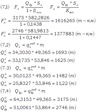 Локомотиво-сутки поездных грузовых локомотивов возросли на 0,57% вследствие снижения локомотиво-суток поездных грузовых локомотивов на промежуточных станциях, оборотных депо и основном депо на 4,22%, 10,13% и 2,84% соответственно. А также вследствие роста локомотиво-суток поездных грузовых локомотивов на станциях оборотного депо на 4,39%, на станциях основного депо на 2,41%, а также на перегонах и станциях смены локомотивной бригады на 1,96% и 2,79%. Рост количества локомотиво-суток поездных грузовых локомотивов отрицательно отразилось на работе железной дороги. 7 Определение величин и динамики качественных показателей грузовых поездов и поездных грузовых локомотивовПо данным ТАБЛИЦЫ 5,1 определяем величину качественных показателей использования грузовых поездов, поездных грузовых локомотивов и на основании этого заполняем ТАБЛИЦУ 7,1 «Качественные показатели использования грузовых поездов и поездных грузовых локомотивов». В соответствии с ТАБЛИЦЕЙ 7,1 необходимо проверить правильность расчёта качественных показателей по следующим формулам взаимосвязи: