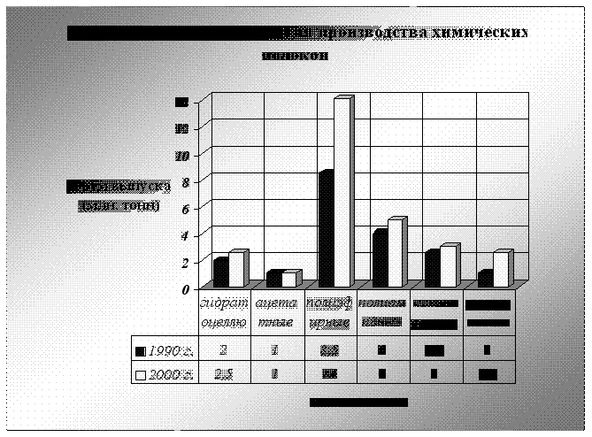 3. Анализ рынков химических волокон Химическая промышленность в Украине является одной из самых крупных отраслей в промышленном секторе экономики. Промышленность представлена следующими основными отраслями: производство минеральных удобрений; лакокрасочная промышленность; производство синтетических волокон и пластмасс, химико-фармацевтическая, коксохимическая промышленность. Предприятия расположены по всей территории Украины. Производство базируется как на собственном сырье, так и на импортируемом (в основном из России). Многие из предприятий химической промышленности входят в число наиболее крупных предприятий Украины по объему производства.