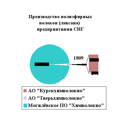 Рис.3.5 Говоря об Украине, следует отметить, что отечественных производителей этого популярнейшего вида волокна у нас нет, хотя в начале 90-х годов в Украине была разработана государственная программа развития производства полиэфиров: в Киеве предполагалось создать мощности по выпуску волокон, в Харькове – для целей упаковки. Однако эта программа не была реализована. Учитывая всё выше сказанное можно было бы предположить создание на ОАО "ЖЗХВ" мощностей по выпуску полиэфира, но наличие конкурентов заставляет