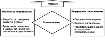 Strategy). Однако для успеха в конкурентной борьбе не столь важно, какими активами (продукцией, оборудованием, технологией, зданиями и сооружениями) обладает предприятие в данный момент. Важно, с какой скоростью оно способно создавать необходимые активы и развивать их. Еще один важный момент заключается в том, что часто неудачи подстерегают менеджмент не в процессе разработки стратегии, а при ее внедрении. Главным препятствием на пути успешной реализации стратегии становятся поведенческие проблемы. Перед менеджментом компании возникают две сложные задачи: управление рисками в условиях неопределенности на рынке и обеспечение поддержки стратегических решений персоналом компании. Одним из примеров нового поколения методологических подходов к разработке стратегии является <стратегия, движимая амбициями>, предложенная Arthur D'Little. Стратегия основана на объединении аналитических методов с использованием процессов и инструментов, позволяющих обеспечить креативность, динамизм и заинтересованное отношение к делу со стороны персонала компании. Такой подход к стратегии имеет три фундаментальных отличия от традиционного: