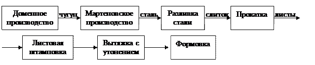 Реферат: Разработка технологического процесса изготовления корпуса масляного фильтра для автомобилей ВАЗ 2101-2106Реферат: Разработка технологического процесса изготовления корпуса масляного фильтра для автомобилей ВАЗ 2101-2106Министерство образования Российской Федерации Магнитогорский Государственный Технический Университет им. Г. И. Носова Кафедра технологий сертификации и сервиса автомобилей КУРСОВОЙ ПРОЕКТ Тема: « Разработка технологического процесса изготовления корпуса масляного фильтра для автомобилей ВАЗ 2101-2106 » Выполнил студент гр. ТСА 01 Макаричев А. А. Проверил Куцепендик В. И. Магнитогорск 2003 Содержание Стр. Введение …………………………………………………………….. 3 1. Описание детали …………………………………………………. 4 2. Технология изготовления детали ……………………………….. 6 2. 1. Производство чугуна ……………………………………….. 6 2. 1. 1. Железные и марганцевые руды ……………………… 6 2. 1. 2. Топливо и флюсы ……………………………………... 6 2. 1. 3. Работа доменной печи ………………………………... 7 2. 1. 4. Продукты доменного производства …………………. 8 2. 2. Производство стали ……………………………………….... 9 2. 2. 1. Мартеновское производство ………………………..... 9 2. 3. Разливка стали ………………………………………………. 11 2. 4. Процесс прокатки ………………………………………….... 13 2. 4. 1. Производство листовой стали ………………………... 13 2. 5. Листовая штамповка ………………………………………... 15 2. 5. 1. Выбор материала …………………………………….... 15 2. 5. 2. Резка и раскрой материала …………………………… 16 2. 5. 3. Определение размеров заготовки …………………..... 16 2. 5. 4. Вытяжка ……………………………………………….. 18 2. 5. 5. Вытяжка с утонением ……………………………….... 19 2. 5. 6. Смазка при вытяжке ………………………………….. 22 2. 5. 7. Формовка …………………………………………….... 22 Заключение ………………………………………………………….. 23 Список литературы …………………………………………………. 24 Введение Металлы ― наиболее распространённые и широко используемые материалы в производстве и в быту человека. Особенно велико значение металлов в наше время, когда большое их количество используют в машиностроительной промышленности, на транспорте, а также в других отраслях народного хозяйства. Производство и обработка металлов возникли очень давно и достигли современного технического уровня развития в результат использования практического опыта и достижений науки многих поколений человеческого общества. Сейчас в автомобильном производстве, практически все детали производятся из стали, и это не удивительно, потому что металл обладает высокой твёрдостью и стойкостью к разрушению (коррозии и т. п.). В курсовом проекте ставится задача разработки технологического процесса изготовления корпуса масляного фильтра для автомобилей ВАЗ 2101-2106. Технология производства корпуса масляного фильтра сводится к написанию всего технологического процесса, начиная от выплавки стали и заканчивая готовой деталью, что и будет рассмотрено. Схема технологии производства корпуса масляного фильтра для автомобилей ВАЗ 2101-2106, по которой мы и будем двигаться, представлена ниже: