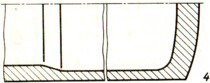 Рис. 6. Схема напряжений, действующих в очаг деформации силы трения, действующие на наружной поверхности заготовки, имеют направление, обратное движению пуансона. Удлинение заготовки при утонении приводит к тому, что в очаге деформации она скользит вверх по пуансону, а силы трения на внутренней поверхности заготовки действуют в направлении движения пуансона. Силы трения на наружной поверхности заготовки способствуют увеличению растягивающих напряжений σx, действующих в стенках протянутой части заготовки, а силы трения на внутренней поверхности заготовки как бы разгружают опасное сечение уменьшая растягивающие напряжения в стенках протянутой части заготовки. Эта особенность вытяжки с утонением и является основной причиной сравнительно больших допустимых деформаций и значительного приращения относительной высоты заготовки за один переход. Заготовки для вытяжки с утонением Заготовки для вытяжки могут быть (рис. 7) получены комбинированной вытяжкой (рис. 7, 1), обратным и прямым выдавливанием (рис. 7, 2), прямым выдавливанием (рис. 7, 3), реже горячей штамповкой с последующей механической обработкой (рис. 7, 4).