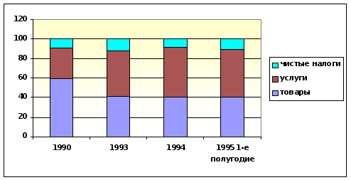 Еще один фактор - существенное сокращение относительной налоговой нагрузки на производителей. В промышленности отношение фактически выплачиваемых налогов к добавленной стоимости упало с 38% в 1996 г. дo 27.4% в январе-августе 1997 г. В строительстве соответствующие показатели составили 28.5 и 17.5%, отраслях связи- 52.3 и 37.1% . Снижение относительной налоговой нагрузки опять-таки было навязано самими производителями.9