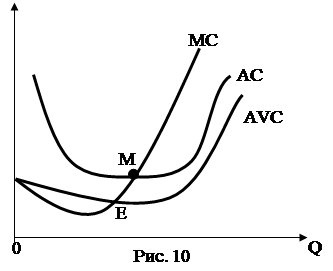 Валовые (общие) издержки (ТС) представляют собой сумму постоянных и переменных издержек при каждом конкретном уровне производства. Неравномерное изменение валовых издержек приводит к тому, что меняются по мере роста объема производства и издержки на единицу продукции, или средние издержки. Средние издержки равны валовым издержкам, деленным на произведенное количество товара (АС=ТС:Q). Этот вид издержек имеет особое значение для понимания рыночного равновесия, поскольку предприниматель стремится их минимизировать. Кривая средних издержек обычно имеет U-образную форму (рис. 9). Сначала средние издержки весьма высокие. Это связано с тем, что большие постоянные издержки распределяются на незначительный объем продукции. По мере роста производства постоянные издержки приходятся на все большее число единиц продукции, и средние издержки быстро падают, доходя до минимума в точке М По мере роста объема производства основное влияние на величину средних издержек начинают оказывать не постоянные, а переменные издержки. Поэтому вследствие действия закона убывающей доходности кривая начинает идти вверх. Следует обратить внимание, что кривая средних издержек непосредственно зависит от кривых средних постоянных издержек (AFC) и средних переменных издержек ( AVC).