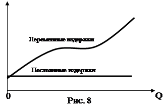 где MU — предельная полезность отдельных товаров, а Р — их цена. Таким образом, были рассмотрены более подробно те факторы, которые лежат в основе кривой спроса. Существенная причина изменения спроса, как обратной функции цены, заключается в происходящем убывании предельной полезности товара. Только тогда, когда цена товара снижается, потребитель будет готов купить последующие количества этого товара, приносящие ему все меньшее удовлетворение. Теория предельной полезности позволяет лучше понять, как ведет себя, как реагирует экономический субъект, произвести более точный анализ спроса и влияния его количественных изменений на рыночное равновесие. Это теория подчеркивает воздействие на экономическую систему импульсов, вытекающих из изменений вкусов потребителей. 3. Предложение и издержки производстваЕсли покупателя при приобретении товара на рынке интересует, прежде всего, его полезность, то для продавца (производителя) центральное место занимают издержки производства. Поскольку в условиях совершенной конкуренции производитель практически не может воздействовать на уровень рыночной цены, постольку именно уровень издержек производства оказывает определяющее воздействие и на размер прибыли, и на возможности расширения производства, и на то, останется ли фирма вообще на данном рынке или будет вынуждена покинуть его. Таким образом, совокупное предложение как сумма рыночного предложения отдельных фирм зависит в конечном итоге от уровня издержек производства, а вид кривой предложения непосредственно связан с динамикой издержек. Рассмотрим подробнее основные принципы этой взаимосвязи издержек производства и предложения. Определим сначала основные виды издержек фирмы. Издержки подразделяются на две большие категории: постоянные и переменные. Постоянные издержки — это расходы, которые остаются неизменными, каково бы ни было количество производимой продукции. К ним относятся плата за аренду помещения, затраты на оборудование, оплата управленческого и административного персонала и т.п. Если на оси абсцисс будем откладывать объем продукции Q, а на оси ординат — издержки С, то постоянные издержки FС будут выглядеть как прямая линия, параллельная оси абсцисс (рис. 8).