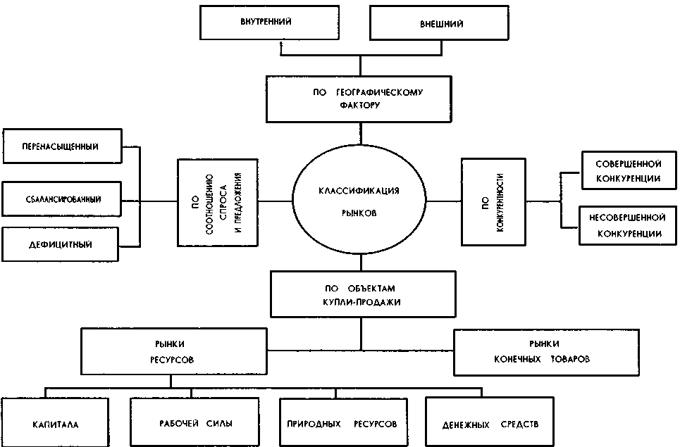 В Рыночное регулирование подразумевает, что государство в лице законодательных и исполнительных органов устанавливает самые общие правила поведения участников рынка, чаще всего в виде «мягких» или «узких» ограничений, касающихся видов товаров, условий продажи, цен. Отношения между государством и агентами рыночного процесса приобретают двунаправленный характер, то есть возможно регулирование на основе договоров, соглашений, государственных заказов, контрактов. Для исключения диктата какого-либо субъекта рыночных отношений, в особенности производителя, государство использует антимонопольные меры. Существование регулируемых рынков подобного типа связано с преобладанием в рыночном хозяйстве негосударственных форм собственности: частной, групповой, коллективной, акционерной. Поэтому возможности государственного вмешательства в экономику ограничиваются. Одним из признаков классификации рынков могут быть его расположение, зона охвата рыночного пространства.Различают местный, национальный и мировой рынок. Местный рынок - стартовая форма рыночной территории, обычно развивающаяся в пределах села, города. Он был характерен доиндустриальной стадии производства. Национальный (внутренний для страны) рынок образовался на индустриальной стадии производства. Усовершенствованные транспорт, связь и реклама помогли обеспечить выгодность реализации товаров во всех регионах страны. В итоге местные рынки стали органическими составными частями внутреннего рынка государства. Самым крупным и всеобъемлющим является мировой рынок, включающий сферу международного обмена. Под термином «мировой рынок» понимают любые товарообменные процессы между странами, связанные с куплей-продажей всего множества продукции, товаров, услуг, независимо от того, кто является агентом торговых операций. Обычно рынок принято называть мировым, если он обладает следующими признаками: а) участие в рынке многих стран; б) крупномасштабность сделок; в) регулярность товарообменных операций; г) ведение расчетов по торговым операциям в свободно конвертируемой валюте. Совокупность рынков, действующих в пределах, внутри страны, обменных процессов и товарно-денежных отношений между участниками процессов на этих рынках именуют внутренним (национальным) рынком. Внутренний рынок образует сферу обращения национальной экономики, а точнее, ту ее часть, которая функционирует, видоизменяется, развивается согласно законам, правилам, нормам, распространяющим свое действие на национальную экономику. В составе внутреннего и мирового рынков могут выделяться региональные рынки. О региональных рынках как самостоятельных структурных образованиях принято говорить, если наблюдается формирование достаточно масштабных, регулярно действующих территориальных рыночных образований с ярко выраженными региональными признаками. В то же время правомерно говорить о региональном рынке в том смысле, что зона его расположения есть определенная территория. Разные рынки различаются способом, посредством которого товар поступает от производителя к продавцу и от продавца к покупателю, объемом единичных продаж, формами оплаты товара, а также степенью легализации рыночных процессов. Рынок непосредственной продажи — это рынок, в котором продавец получает, приобретает това