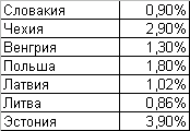 Рост рынка будет продолжаться, так как и в масштабах экономики, и в сравнении с рынками других стран, рынок корпоративных облигаций в России остается недостаточно развитым. Сравнивая объем рынка корпоративных облигаций с ВВП, имеем, что объем рынка корпоративных облигаций составляет порядка 1.03% ВВП. Величина достаточно низкая, свидетельствующая о большом потенциале для роста. В большинстве стран с развитыми финансовыми рынками объем рынка корпоративных облигаций составляет не менее 10% ВВП, и может достигать 70-80% ВВП (Дания, США, Исландия). Эти сравнения однозначно свидетельствуют о значительной неразвитости рынка корпоративных облигаций в России. Даже по сравнению со многими другими странами т.н. «переходной экономики» рынок корпоративных облигаций в России остается недостаточно развитым. Данные о размерах данных рынков в ряде стран Восточной Европы приведены в Таблице. Таблица 1: Объемы рынков корпоративных облигаций в ряде стран Восточной Европы (в % от ВВП)