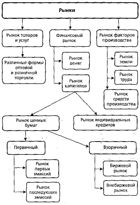 Реферат: Рынок: типы, функции, структураРеферат: Рынок: типы, функции, структураЦентросоюз Российской Федерации Московский Университет Потребительской Кооперации Кафедра экономической теорииКурсовая работа по экономической теорииРынок: типы, функции, структураВыполнил: Студент 1-го курса Ф-та МЭО, группы МЭ-14Курносов Андрей Сергеевич Научный руководитель: Доцент Венцкене Светлана АлександровнаМосква 2001План: Введение. 1.Рынок: типы, функции, структура……………………………1 2.Механизм функционирования рынка: спрос, предложение, рыночное равновесие. ………………………………………...13 3.Рынок труда. ………………………………………………...23 Заключение. Введение: Рынок — это не только общеэкономическая категория, присущая в той или иной степени всем этапам развития цивилизации, но это одновременно сложное социально-философское понятие. Оно вовсе не ограничивается экономической сферой. Как результат естественноисторического развития человеческого общества рынок включает исторические, национальные, культурные, религиозные, психологические особенности развития народов, вобравших в себя все богатства многовековых традиций совместного устройства культурной и экономической жизни. Это определяет особенности современного рынка и рыночной системы в различных странах. Рынок имел место во всех цивилизациях, но его роль в них значительно различается. Тот факт, что рыночные отношения и сегодня далеки от совершенства, возможно, объясняется тем, что в природе совершенство вообще недостижимо. Цель данной курсовой работы заключается в том, чтобы рассмотреть рыночные отношения, в целом, с точки зрения современных понятий рыночной экономики, опираясь при этом на основные догматы экономической теории и опыт прошлого, учитывая мнения различных учёных в данной области науки и делая свой личный обобщённый вывод из существующих на сей день знаний в области рыночной экономики. Одним словом, основываясь на знаниях провести анализ полученной информации, рассмотреть частные случаи и, возможно, предложить своё видение существующих проблем и способ их разрешения. Первый рассмотренный вопрос посвящён типам, функциям и структуре рынка. Это сделано для того, чтобы представить взаимосвязь между компонентами и другими составляющими рынка и дать структурное представление рыночных отношений. Во втором вопросе идет речь о механизме функционирования рынка, спросе предложении и рыночном равновесии. Здесь более подробно раскрывается принцип работы оговоренной структуры, её отдельные механизмы. Рассматривается спрос и факторы его определяющие, эластичность спроса, основополагающие принципы рыночного равновесия и т.д. Третий вопрос заключает в себе рассмотрение рынка труда, безработицы и методы борьбы с ней. Здесь говорится о субъектах рынка труда, и приводятся некоторые статистические данные. 1. РЫНОК: ТИПЫ, ФУНКЦИИ, СТРУКТУРА ТИПЫ РЫНКА История развития рынка позволяет выделить следующие типы рынка: неразвитый, свободный, регулируемыми деформированный. Неразвитый рынок характеризуется тем, что рыночные отношения носят случайный, чаше всего товарный (бартерный) характер. Но уже и здесь рынок играет определенную роль, способствует дифференциации членов общества, усилению мотивации к развитию производства тех или иных товаров. Свободный (классический) рынок 