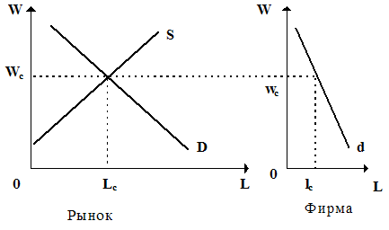 Wc – равновесная заработная плата; Lc – численность нанимаемых работников; S – кривая предложения; D – кривая спроса. Равновесная ставка заработной платы и равновесный уровень занятости данного вида труда определяются на пересечении кривых предложения и спроса на труд (в точке С). Экономисты-неоклассики обосновали вывод о том, что полная занятость является нормой для капитализма. Они объясняют это тем, что в соответствии с классической теорией совокупное предложение в экономике определяет уровень реального объема производства при полной занятости, а совокупный спрос — уровень цен. Кроме того, согласно неоклассическим представлениям в рыночной экономике существует эластичность соотношения цен и заработной платы. Даже если и произойдет временное сокращение общих расходов, то оно будет компенсировано снижением цен и заработной платы и в результате реальный объем производства, занятость и реальный доход не снизятся. Согласно классической теории совокупный спрос обычно стабилен, но если бы упал, то цена быстро бы снизилась. Поскольку всерьез говорить об изменении заработной платы в точном соответствии с колебаниями спроса и предложения, а тем более об отсутствии безработицы не приходится, сторонники этой концепции ссылаются на некие несовершенства рынка, которые и приводят к несоответствию их теории с жизнью. К ним относят влияние профсоюзов, установление государством минимальных ставок заработной платы, отсутствие информации и т.п. Выдвигается также тезис о якобы добровольном характере безработицы. Однако если безработица носит такой характер, то почему она колеблется в зависимости от фазы экономического цикла? Выдвигается и тезис о «поиске» рабочего места как явлении, вызывающем нестабильность рынка. Суть его заключается в том, что наемные работники очень разборчивы и стремятся к максимально выгодной работе. Однако и в этом случае не ясно, почему таких работников бывает то 4—5%, то все 15%? Но главный вопрос, на который не могут ответить сторонники неоклассического подхода, — почему все наемные работники в случае превышения их предложения над спросом не предлагают свою рабочую силу по более низкой цене? Марксизм об особенностях рынка труда.В марксистской экономической теории рынок труда определяется как рынок особого рода. Его отличает от других рынков разница товара «рабочая сила» и физического капитала. Если рабочая сила в процессе труда создает стоимость, то все прочие виды ресурсов лишь переносятся на новую стоимость самим трудом. Это кардинально отличает рабочую силу от всех прочих ресурсов, обеспечивает ее ключевое значение в общественном производстве. Кроме того, марксисты полагают, что рынок рабочей силы, хотя и подчиняется общим рыночным закономерностям, имеет существенные особенности, поскольку сама рабочая сила как субъективный фактор производства, будучи товаром, может в то же время активно влиять на соотношение спроса и предложения. Ни один из подходов не дает полного и адекватного представления о механизме функционирования рынка рабочей силы, хотя они и отражают отдельные его элементы. Специфика рынка труда.Рассматриваемые концепции, дополняя друг друга, дают общую картину функционирования рынка труда. Этот рынок, подчиняясь в целом законам спроса и предложения, по многим принципам своего